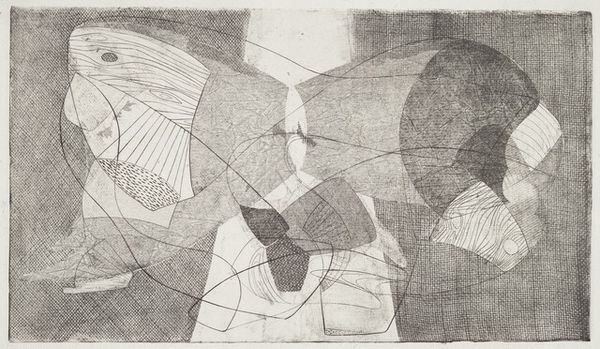 John Ferren made this untitled print using etching, and aquatint, sometime in the mid 20th century. You know, when I look at this print, I see a bunch of shapes just hanging out. It's like they're floating in space, having a conversation with each other. Ferren uses a range of techniques here, all these lines and textures create a sense of depth and movement on an otherwise pretty flat surface. Check out that big, dark shape on the right – it's like a cloud, or a shadow, and it anchors the whole composition. Then you've got these delicate lines snaking around, connecting all the different elements. It feels like a dance, a playful back-and-forth between form and space. Ferren was part of the Abstract Expressionist movement, and like his peers, he was interested in exploring the possibilities of pure abstraction. It reminds me a little of some of Joan Miró’s etchings, in the way that the composition feels so loose and improvisational. Ultimately, this piece is all about ambiguity, so don't be afraid to bring your own interpretations to the table!