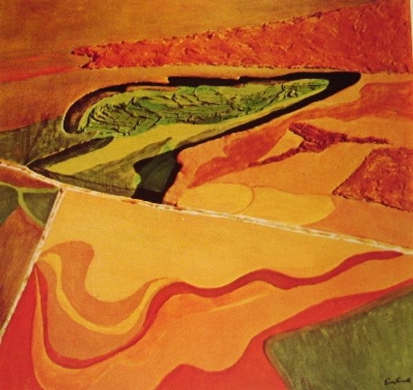 Javad Hamidi, created this Untitled work using oil, producing a composition dominated by soft, organic forms and warm hues. At first glance, the painting presents an ambiguous landscape, yet upon closer inspection, we see suggestions of the human form, seamlessly merging with the terrain. Hamidi employs a palette of earth tones, predominantly browns and oranges, to blur the line between the body and the earth. The composition is structured around these undulating shapes. The artist challenges traditional notions of representation. Are we looking at a body or a landscape, or something in between? This ambiguity invites us to question the boundaries between the human and the natural world. The painting can be viewed as a semiotic exercise, where Hamidi uses recognizable forms, yet destabilizes their conventional meanings. The overall effect is a destabilization of meaning, asking us to consider our relationship with the body and the earth.
