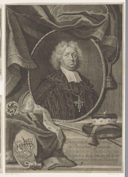 This oil on canvas portrait of Jacobus Govaerts hangs in the Rijksmuseum, and was painted by an anonymous artist. Notice how the subject's white robes dominate, creating a striking contrast against the dark background. The composition here is carefully structured. Govaerts stands almost centrally, the vertical line of his staff anchoring the image. His gaze meets ours, an invitation to engage with his status and authority. The muted color palette, dominated by whites, blacks, and grays, lends a solemnity to the scene, while subtle textures in the fabric and fur add depth. The artist has meticulously rendered the textures and details of Govaerts’ garments. These details aren't merely decorative; they signify his position as Master of Ceremonies. The interplay of light and shadow across the robes adds a sense of movement, preventing the portrait from feeling static. This is more than a likeness; it's a study in the semiotics of power, where every visual element communicates meaning about status and identity.