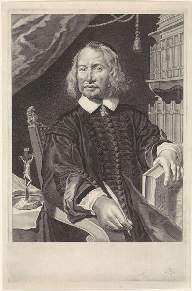 This is Lucas Vorsterman the First’s portrait of Gaspard Duarte, made with engraving sometime before 1675. This artwork comes from the traditional art practice of engraving, where the artist etches lines into a metal plate, applies ink, and then transfers the image onto paper. What's compelling is the immense labor involved in creating such intricate details. Each line, each shadow, is carefully carved by hand, demanding both technical skill and artistic vision. The very act of engraving, with its repetitive motions and meticulous process, reflects the values of craft. But it also speaks to a larger social context. Vorsterman was one of the main printmakers for Peter Paul Rubens, which means he was, in effect, a skilled worker in a larger, very successful commercial enterprise. The way in which the artist uses the tools and techniques imbues the image with a sense of social and cultural significance. It challenges the separation of art from craft, urging us to consider the labor and social context behind every work we see.