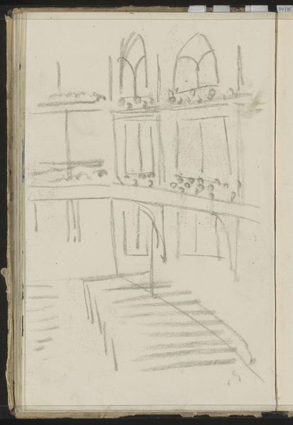 Carel Adolph Lion Cachet created this architectural study with graphite. This piece offers a glimpse into the artistic process through the conventions of architectural drawing. Made in the Netherlands, likely in the late 19th or early 20th century, it reflects the period's focus on detailed observation and technical skill within the context of the Dutch art academies. The sketch demonstrates a blend of precision and freedom, indicative of academic training in the period. Cachet's approach can be seen as either conservative, reinforcing established norms, or progressive, given the period's increasing recognition of sketches as autonomous works. Either way, it serves as an interesting commentary on the institutions of art education. By looking at the curriculum of Dutch art schools at the time, and the careers of students, we can see how an apparently simple architectural study is actually embedded in the culture of the time.