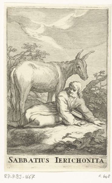 Valentin Lefebvre created this print, 'Evangelist Lucas', sometime between 1642 and 1682. It depicts the Evangelist Lucas, holding a book and sitting on a bull, surrounded by clouds. During the 17th century, depictions of religious figures were often used to reinforce religious doctrine and moral values, reflecting the power and influence of the Church. Lefebvre, however, was operating within a changing Europe, one where traditional religious authority was beginning to be questioned and new scientific and philosophical ideas were emerging. The choice of the bull as Lucas's attribute is not arbitrary; it symbolizes sacrifice, service, and strength, qualities associated with the Evangelist's work. By depicting Lucas with the bull, Lefebvre participates in a long tradition of linking saints with specific symbols that communicate aspects of their identity and role within the Christian narrative. Consider how the artist blends traditional religious iconography with the emerging intellectual currents of his time, inviting viewers to reflect on the relationship between faith, knowledge, and the changing world.