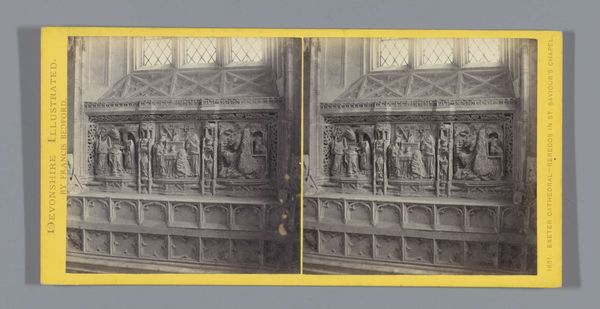 Curator: This photograph, dating from 1868 to 1870, captures Antonio Canova's sculpture, specifically the tomb of Foscari and a lion from the tomb monument of Pope Clement XIII. Editor: The lion is what really captures my attention; it projects such regal repose, strength made monumental in repose. Curator: I think this print is interesting precisely as a reproduction. The marble original was conceived to inspire awe. This image makes me consider the means of artistic distribution in the late 19th century: How did a broader public access art before mass tourism, and what processes made that access possible? Editor: This photograph seems to suggest a dialogue between power and fragility. While Pope Clement represents established religious power, it’s worthwhile to look at who is not represented. How were the experiences of the sculptors or laborers reflected, particularly in their relationship to the Church? Curator: Exactly, the creation of this monument was not solitary. Think about the quarries, the transportation, the workshops, and the politics of marble. Editor: I'm struck by the image’s engagement with the aesthetics of death and commemoration—particularly around figures like Pope Clement who influenced religious discourse. In terms of gender and politics, it becomes a fascinating meditation on the roles ascribed to men in religious leadership and their memorialization versus other figures in society who might never get these resources spent on remembering their names. Curator: Agreed, there is something powerful in noting how the image reduces complex social labor to a two-dimensional scene accessible to a wider audience, while inevitably distancing the viewer from the reality of its making. Editor: Reflecting on this, I realize that the tomb captures larger historical trends, memorializing figures and power structures and obscuring stories from other narratives in a similar period. Curator: Thinking of it that way does really allow one to start considering all of those unseen stories—beyond just the object.