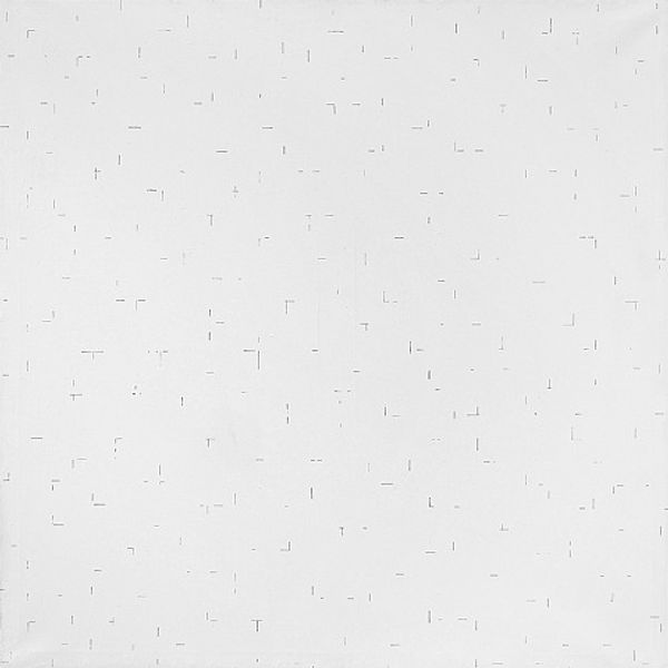 Curator: Well, if this isn’t calming, I don’t know what is! Lee Ufan’s, "With Winds", crafted in 1991 with acrylic paint, seems to breathe. What strikes you initially? Editor: It’s hushed, almost a whisper. A field of snowy static, with just the faintest hints of something… stirring. The strokes themselves look like shorthand – as though we are meant to interpret, rather than simply look. They're glyphs of a lost language. Curator: Lost language indeed. Ufan, part of the Dansaekhwa movement, was all about restraint. It's fascinating how such minimal gestures can feel so expressive, right? The repetition… it's almost meditative, isn’t it? I feel like I'm gazing into a Zen garden after a light snowfall. Editor: Exactly! Snowfall carries specific weight: Purity. Loss. Absence. The painting doesn't scream at you. It invites contemplation, forcing you to confront what you bring to it. Are those winds internal, emotional? Or echoes of historical turbulence? Curator: Oh, that’s beautiful. Turbulence echoed through stillness… Ufan used painting as a dialogue with the void, the space between things. These brushstrokes aren't objects in themselves but evidence of an interaction, like footprints in snow. Editor: Footprints are also the markings of transient presences… Think of those minimalist calligraphic marks that seem like attempts to capture movement and transience with a single breath. This isn't just abstract; it's elemental, tapping into the primal human need to find meaning in the patterns around us. Curator: And there's a profound beauty in that seeking, isn’t there? A willingness to embrace uncertainty, to see the world as a field of potential rather than a fixed landscape. "With Winds" whispers an invitation, urging us to slow down, look closer, and listen to the unseen currents that shape our lives. Editor: Indeed, that sense of open-ended possibility…It resists definition. It’s what allows it to speak differently to each of us. To hold memory and potential for generations to come.