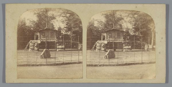 Pieter Oosterhuis captured this albumen print of Natura Artis Magistra Amsterdam, showing us a curious scene. A tree appears to grow directly from the roof of what seems to be a small house or structure within the zoo. The tree, a potent symbol of life, growth, and connection between the earthly and the divine, pierces through this artificial construct. This juxtaposition brings to mind the ancient motif of the 'axis mundi,' the world axis, found in various cultures—a symbolic center connecting heaven and earth. Think of the Norse Yggdrasil or the Tree of Knowledge. The tree springing forth from a man-made structure may evoke subconscious associations with the cyclical nature of life, death, and rebirth. The image pulls on something deep within us, revealing a tension between the natural world's persistent vitality and our attempts to order and contain it. The act of planting a tree on top of a roof transforms the building into a living sculpture, thus questioning the distinction between architecture and nature. This blending of nature and architecture presents a powerful, recurring image that, like the mythical phoenix, is continuously reborn in art and human imagination.