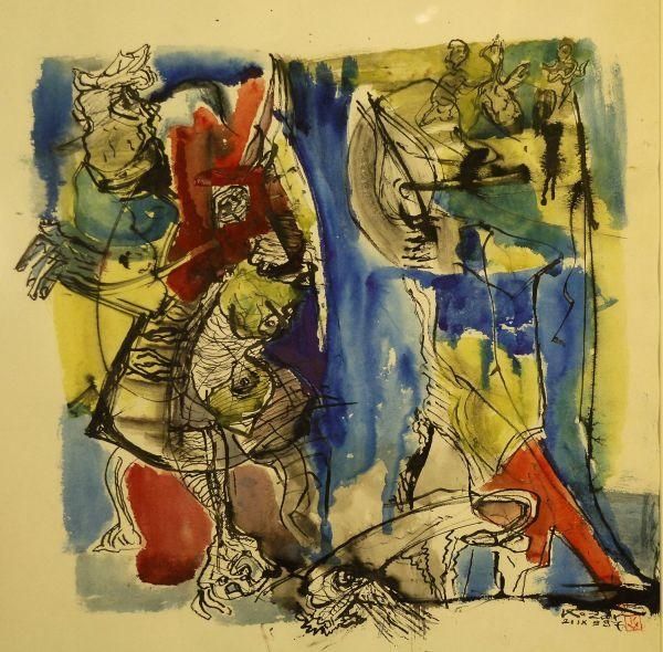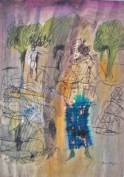 Bela Czobel's 'Alakok' is rendered in watercolor, a medium that captures the ethereal quality of memory itself. The artist presents us with figures that are both present and dissolving, evoking a sense of fleeting existence. Notice the recurring motif of the draped form, reminiscent of classical statuary. It echoes the Venus Pudica, a symbol of modesty and concealed sensuality, a pose that dates back to antiquity and reappears throughout Renaissance and Baroque art. Here, however, the form is fragmented, almost ghostly. It's as if Czobel is hinting at the way archetypes persist in our collective unconscious, reappearing in art across centuries, yet are continually reshaped by individual and cultural experiences. The dissolving nature of these figures conveys the emotional weight and fragility of human existence and our attempts to capture and remember it. A symbol is never truly lost; it only transforms.