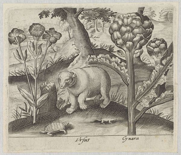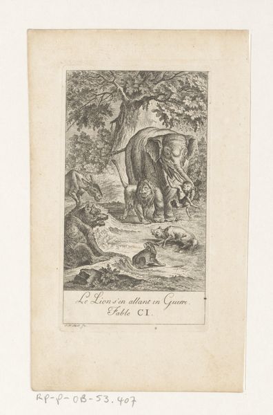 Curator: Here in the Rijksmuseum, we have an etching entitled “Neushoorn en drie olifanten,” dating roughly from 1581 to 1600, created by an anonymous artist. Editor: My first impression is just how striking the textures are! The artist really emphasized the physicality of these animals. There’s a dynamic interplay of intricate patterns and smooth surfaces, which really catches the eye. Curator: It’s fascinating how European artists of this period represented exotic animals they likely never saw. Prints like this were often based on second-hand accounts, shaping public perceptions of the wider world and, in a way, enacting a kind of symbolic appropriation through imagery. Editor: Exactly! Note how the stark lines and precise detailing give a almost scientific, albeit somewhat imaginative, quality. The cross-hatching emphasizes form and volume, which brings the figures into high relief. Even the landscape seems carefully constructed rather than naturally observed. Curator: That deliberate construction speaks volumes. This image reflects Europe’s burgeoning colonial ambitions. By showcasing these creatures, prints like these solidified European dominance over the natural world and the places they inhabited, framing the animals as specimens in the theater of expanding trade and empire. Editor: It’s like the artist is saying, “Here are these impressive creatures,” almost objectifying them through the controlled and meticulous use of line and form. It also plays with light and shadow to create a strong sense of depth and volume, enhancing that palpable, sculptural presence. Curator: Despite the formal artistry, there's a troubling history embedded in these early depictions. This print participates in a larger project of visual colonialism, illustrating Europe's growing power through the act of representation. Editor: That's an important point to consider. While I was initially drawn to the craftsmanship, your observations invite a deeper reflection on the social implications of such images. It highlights the inherent tension in appreciating historical art without ignoring the context of its creation and consumption. Curator: Precisely. Art from the Renaissance offers a window into both the era's aesthetic values and its underlying power dynamics, prompting critical engagement with the past. Editor: Indeed, a rich and layered artwork, rewarding extended viewing.