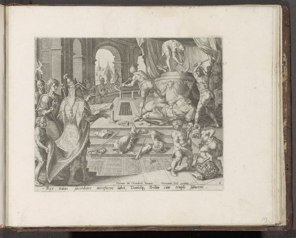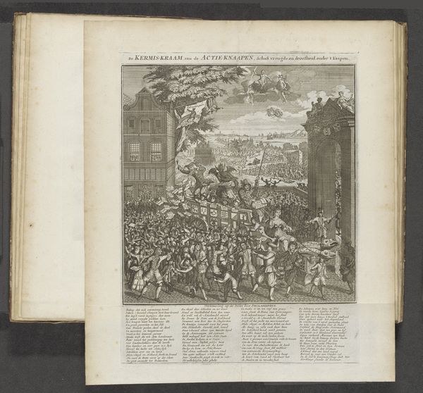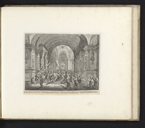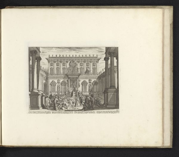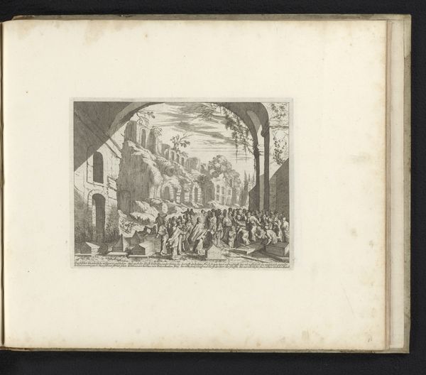 Curator: Looking at this print by Melchior Küsel, made sometime between 1670 and 1682, I'm immediately struck by the swirling chaos depicted. Editor: Chaos is definitely the word! The mood is somber but with bursts of fevered activity. I'm drawn to the sheer quantity of tiny figures. How does this "Kruisdraging"—"Carrying of the Cross"—fit within the landscape around it? Curator: The city teems! Küsel's line engraving situates this iconic religious event in a plausible, though obviously idealized, urban environment. Note how classical architecture is seamlessly merged into a cityscape teeming with people. This choice perhaps humanizes the divine drama. Editor: Right, the materiality of those lines almost feels democratic, an attempt to represent an entire city, its collective labor made visible even in moments of immense suffering. You know, it does make me think about the copperplate itself – the intense work of the engraver. Did Küsel do this engraving himself? Curator: As far as scholars can tell, yes, he almost certainly did. It is difficult to know exactly what compelled Küsel to spend countless hours incising lines. What thoughts went through his head as he crafted this intense drama out of lines? This image makes me consider how suffering is often an integral part of spiritual and aesthetic experience. Editor: The sheer production time—conceiving the composition, transferring it, the meticulous cutting of the lines—creates an object imbued with so much time and care, almost as an act of… well, devotion perhaps. Think about the social implications as well; the cost, and accessibility of prints such as these would vary. The work could function almost as an artifact of class status. Curator: An artifact infused with a spiritual message. I can imagine this print circulating through a diverse public sphere, where its meaning could be debated, transformed, internalized by its many audiences. The way Küsel combined faith, history and social commentary into such a concentrated medium still has a way of affecting us. Editor: Exactly. Examining Küsel's “Kruisdraging” makes us more acutely aware of the web of physical work, class, and the enduring presence of history throughout it all. I appreciate how it lets us reflect not just on faith but also the processes that create our cultural artifacts.