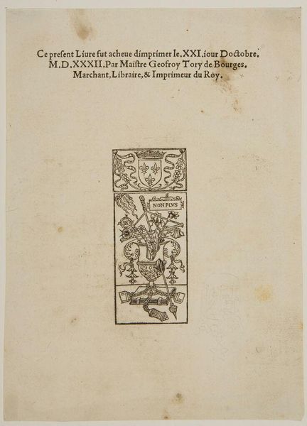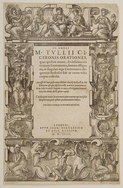 Curator: This piece, an anonymous border titled "Border from Anglicanae Insulae Nova Descriptio," presents a wealth of structured ornament. Editor: It's almost claustrophobic, isn’t it? All those chubby cherubs and stone faces feel like they're trying to escape the page. Curator: Indeed, the composition is densely packed, reflecting a Mannerist sensibility that favors complexity and artifice over naturalism. Note the columns, the cartouche, and the varying relief, each meticulously rendered. Editor: The fact that it's framing a map, though… it’s like the frame is more important than what it’s supposed to be highlighting. Curator: The frame as an object, yes, surpassing the significance of its subject! Well observed. Editor: It leaves me feeling a bit restless and ready to break free, myself. Curator: An interesting counterpoint to my rather more admiring approach.