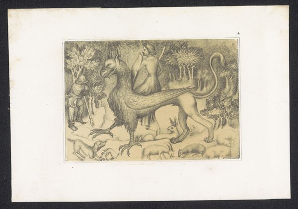 Editor: So, this is *Spazierfahrt*, or "Going for a Drive," a woodcut made between 1902 and 1918 by Maria Uhden. The stark black and white really leaps out, creating a simplified scene that feels both idyllic and a bit unsettling. What catches your eye in this print? Curator: The bold simplification, you're right, lends itself to potent symbolic interpretation. Note how the horse and carriage occupy a commanding space, contrasting sharply with the subtle figures riding. Does that tension spark anything for you, perhaps relating to power, status, or even social expectations within that era? Editor: It does seem like there's a real contrast in the weight given to the natural world and the figures within it. Is that a typical theme for artists from the German Expressionism movement? Curator: The natural world as a conduit for emotional and psychological states certainly is. Consider how Uhden uses the stark lines to define not just shapes, but also a mood. The dark woods, the racing deer – do those not suggest hidden desires or repressed anxieties bubbling beneath the surface of civilized society? What memories are encoded within the horse and carriage? Editor: That's fascinating! It's like the idyllic scene is just a mask for something deeper and more complex. Curator: Precisely. The power of images lies in their ability to convey complex ideas through accessible forms. So much historical baggage rests on the most casual representation of leisure and the natural world. Has this changed how you interpret other woodcuts, or even other artwork of this period? Editor: Definitely. I’ll be looking closer at how artists use simplified forms to create powerful symbolic meanings. Thank you! Curator: And I shall think of the racing deer as a symbol of the anxieties that art allows us to face head-on.