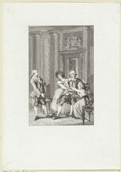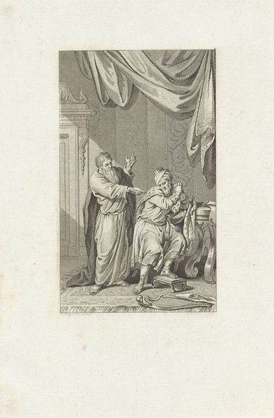 Staande man wijst met zijn wijsvinger en geeft een zittende man advies 1773