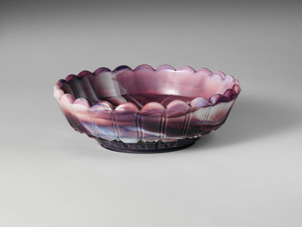 Curator: Looking at this ceramic piece, "Basin" by Lyman, Fenton & Co., made sometime between 1846 and 1858... its form feels rather sturdy, wouldn't you agree? Editor: Sturdy is one word for it. To me, it seems like a cosmic collision in a bowl! A dark, swirling vortex erupting with flecks of amber and cerulean. There's something almost unsettling about it. Curator: Unsettling? Perhaps it’s the glaze? It’s a striking example of Rockingham ware. Notice how the mottled colors are achieved by layering different colored slips before firing? It gives the ceramic an almost marbleized effect. Editor: Exactly! That layering you mentioned... the effect is less marble and more oil slick. Do you think that those blues, the way they subtly bleed into the umber, might be accidental, or intentional symbolism? Curator: That’s a wonderfully intuitive read! In its time, Rockingham ware like this basin was wildly popular for its mass production imitating luxury materials for a burgeoning American middle class, which is about pragmatism not about poetry! This democratization of style meant the decorative arts landed in many hands. Editor: So this object, as commonplace as it might have been, would act almost like a tiny, private dreamscape in someone's home? I keep feeling like this basin holds more stories in its glaze, like it holds ancient rivers reflecting on a dying sun. It evokes the weight of unspoken secrets. Curator: Your romantic sensibility brings a very needed human component to art interpretation, I might not be seeing. Looking at this piece, in the galleries of The Met, with our 21st-century gaze we're naturally bringing entirely fresh sets of associations! It sounds silly, but every work is a meeting point and our impressions give the old materials the chance to still do their song, somehow! Editor: Yes, it's the alchemy of interpretation, right? Seeing old objects in a new light and discovering reflections of ourselves. I think I appreciate its moody ambiguity a lot more now. Curator: Yes! Well put. Perhaps let's move to the next gallery?