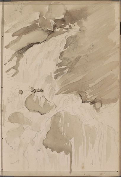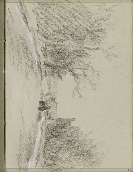 Editor: This is "Rotsen," a landscape drawing from 1858 by Johannes Tavenraat. It's done in charcoal and pencil, and has this moody, almost brooding quality. It feels very dramatic, but in a quiet way. What do you see in it? Curator: Oh, it pulls me right in. Notice how Tavenraat coaxes form out of shadow, that beautiful push and pull of light. The rocks almost breathe, don’t they? He captures that romantic sensibility of the time – nature’s power, its sublime indifference to us little humans… It makes you want to climb right in and feel the dampness of the stone, hear the wind whistling. It’s a sketch, a moment captured – but a feeling so complete. Does it make you think of anything, Emily? Any places? Editor: Definitely! I see the Scottish Highlands. But I'm struck by how… unfinished it seems. Like a fleeting impression he needed to capture quickly. Curator: Precisely! This immediacy, that raw emotion, is core to Romanticism. But, also consider, isn’t there a certain “finished” feeling about it as well? Maybe not finished in the academic, polished sense, but it captures everything essential, wouldn’t you say? It says all it needs to, nothing more. That’s the mark of a master. Editor: You’re right, it's all there. The texture, the weight…It’s surprising how much he conveys with such simple means. Curator: Isn't it, though? And think about the choices Tavenraat made—the angle, the play of dark and light, what he chose to include, what he left out. Every decision speaks volumes. Art isn’t about what you see, my dear; it’s about how it makes you *feel.* It’s about the unspoken conversation between the artist and you. Editor: This has totally shifted my perspective. I'll definitely look at other Romantic landscapes with fresh eyes now. Curator: Splendid! That’s the joy of art, isn’t it? Always learning, always seeing something new in the old.