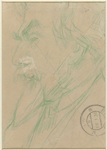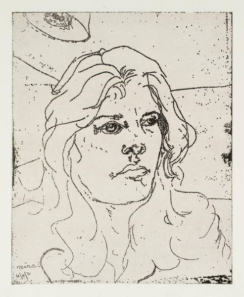 Curator: This is Barry Flanagan's "David King", a work currently held in the Tate Collections. Editor: It has a rather raw, almost unfinished quality—the dots create such a striking texture! Curator: Absolutely. Flanagan's process here feels almost like a sketch, prioritizing the immediate, physical act of mark-making and the way the materials render that act. Editor: I’m intrigued by the subject's gaze; it carries a weight of experience, suggesting layers of identity and perhaps a confrontation with societal norms or political structures. Curator: Indeed, Flanagan was always keen to challenge conventional definitions of art. Here, the choice of such simple means really throws the focus back on the labor and the impact it has. Editor: It’s interesting how this piece invites contemplation on the relationship between artistic labor and societal engagement. Curator: It certainly gives us a lot to consider about the making of art and its place in the world.