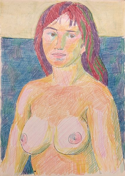 Hryhorii Havrylenko made this nude drawing with colored pencil, at a time unknown to us. Look how the simple, almost naive mark-making builds the form. This isn’t about sharp lines or perfect shading, it’s more about the cumulative effect, a kind of gentle vibration that suggests the softness of skin. The colors are muted, blush tones and pale yellows that feel intimate, like a half-remembered dream. The texture of the paper peeks through, reminding you of the physical act of drawing, the way the pencil moves back and forth, building up the image one stroke at a time. Notice around the model’s shoulders, you can see the individual strokes more clearly, how each line contributes to the overall form. It's like the drawing is breathing. This feels connected to other artists who used simple tools to capture something essential, like maybe Paula Modersohn-Becker. What do you think? Anyway, it’s more about suggestion than declaration, leaving space for your own interpretation.