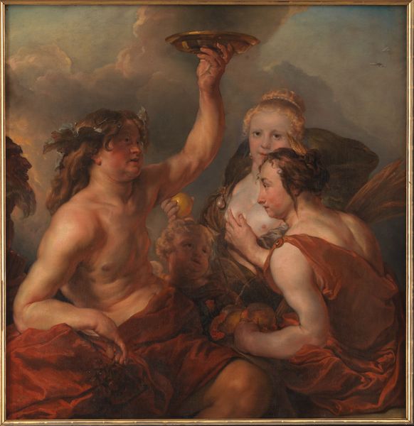 Giovanni Antonio Pellegrini captured this scene of Bacchus and Ariadne on canvas, and within it, a powerful drama of love and abandonment unfolds. The motifs are steeped in classical antiquity: Bacchus, crowned with vine leaves, embodies ecstatic release, while Ariadne’s gesture of supplication speaks of her despair. Ariadne's outstretched hand echoes across time, from ancient sculptures to Renaissance paintings, each instance resonating with a plea for mercy. The yearning is palpable, a universal expression of vulnerability. Consider how this very gesture appears in depictions of Mary Magdalene. Its evolution reveals much about our collective anxieties around abandonment, a psychological wound reopened with each reiteration. This hand isn't simply a visual element; it's a conduit for deeply embedded emotions, engaging viewers on a subconscious level and reminding us of the cyclical nature of human experience. Pellegrini does more than simply show; he makes us feel.