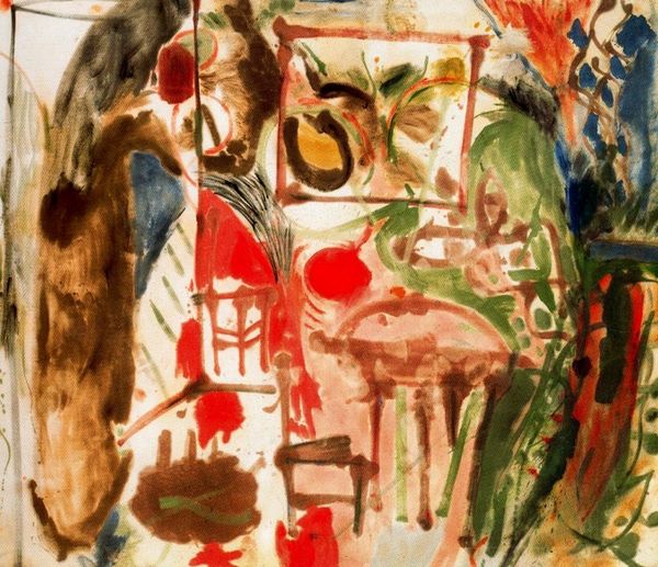 Editor: This is "Vivre avec mes amis" by Francois Arnal, created in 1988. It's a mixed media piece and it has such a playful, almost chaotic energy, like a joyful explosion on the canvas! What do you see in this work? Curator: Joyful explosion - I love that! For me, this piece feels like peering into Arnal's mind. The abstract forms, those scribbled lines - they're like fleeting thoughts, overlapping memories. The title, "Living With My Friends," makes me think of the energy of companionship. Imagine trying to capture the essence of a conversation with close friends, that sense of unfinished sentences, shared jokes, and overlapping stories. Editor: That's a beautiful interpretation. It reminds me of automatic writing, where you just let the pen flow without thinking too much. Do you think Arnal was aiming for that? Curator: Perhaps. Or maybe he was trying to capture something even more ephemeral – the feeling of simply being in someone’s presence, even without a word exchanged. What strikes you about the colors? Editor: The colors are pretty interesting - reds, blues, greens...they seem kind of primary but are also kind of muted somehow? Not sure how to interpret it. Curator: Yes, the muted tones offer an interesting contrast to the otherwise chaotic image, as though viewed through an aged memory! This, for me, captures a comforting rather than purely wild idea of "living with my friends". It’s less about perfectly rendered details, and more about capturing the spirit of camaraderie. The feeling, rather than the specifics. It's about the relationships themselves, abstracted, reconfigured. Editor: That makes so much sense! I see it in a completely different light now. It's like a visual representation of shared experiences, almost like a collage of moments. Curator: Exactly! I think that is exactly what Arnal was going for here, and I think it is beautiful!