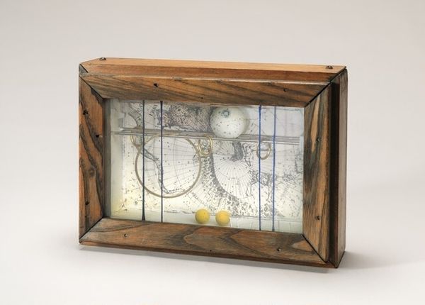 This is Alighiero Boetti's "Cubo," and it's like a funky architectural model meets a treasure chest of materials. Boetti's playful approach really shines here. The materials aren't precious, but the way they're arranged makes them sing. Look closely at the top, it's like a deconstructed puzzle, bits of wood, some gnawed and distressed, all coming together. And then those sides – layers of wood, metal, and that hazy blue material. What I love is the way it reveals its construction. Nothing is hidden. You see the edges, the seams, the way things are pieced together. It reminds me a bit of Kurt Schwitters, that same joy in collecting and arranging found materials, elevating the everyday into something poetic. "Cubo" is not trying to fool you, it's about the pleasure of seeing how things are made, a celebration of process. Art doesn’t have to be a mystery, it can be a conversation.