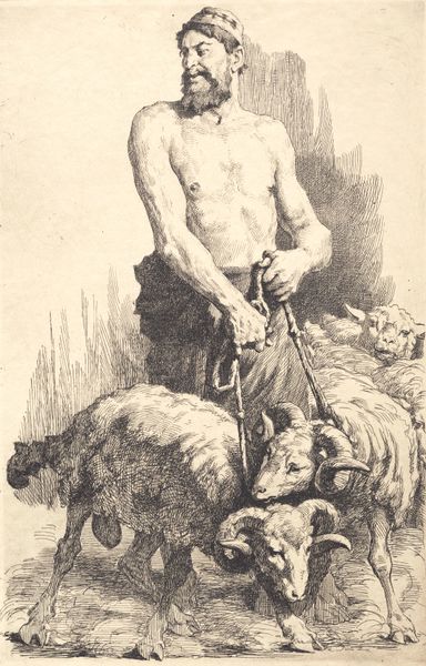 Eduard Isabekyan's painting, "Young David", captivates us with its monumental composition and textured surface. The eye is immediately drawn to the figure of David, rendered with a sensitivity that balances youthful innocence and heroic potential. Isabekyan’s technique, characterized by dynamic brushstrokes and a palette of earth tones contrasted with cooler blues and greens, builds up a rich, almost tactile surface. Look at the symbolic tension as David, the future king, is depicted not with royal regalia but in a humble state, accompanied by a tiger and goat. In many ways the painting can be read as a structuralist investigation into the nature of power and authority. The rough texture of the paint and the rugged landscape emphasize the raw, untamed world from which David emerges. The monumental scale and idealized depiction of David serve to elevate the figure to a symbol of Armenian national identity.