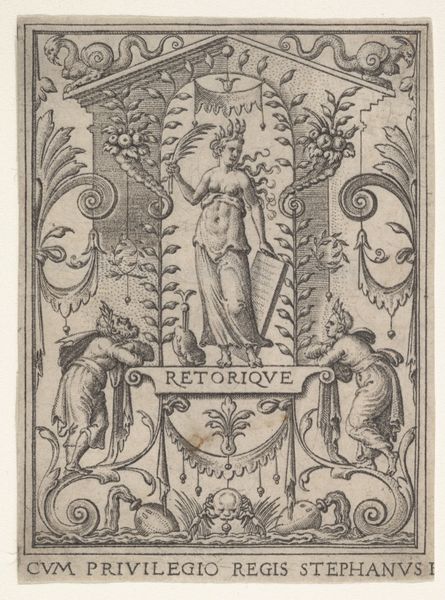 Theodor de Bry created this engraving called "An Angel Trampling a Skeleton" as part of a series for artists, sometime in the late 16th century. The image combines religious and decorative motifs that speak to the period's complex relationship between faith, art, and society. The angel, a symbol of divine power, is shown defeating death, represented by the skeleton. This imagery would have resonated with the religious sensibilities of the time, particularly in the context of the Protestant Reformation and Counter-Reformation. But the work is also a "Grotisch", a decorative grotesque, meant to be used as inspiration for craftsmen, goldsmiths or other artists. It is designed for use, to inspire other works of art rather than to stand alone. To understand this work better, we might look to period literature, religious texts, and art theory. By situating the engraving within its historical and institutional context, we can better appreciate its meaning and significance as both a religious statement and an artistic model.