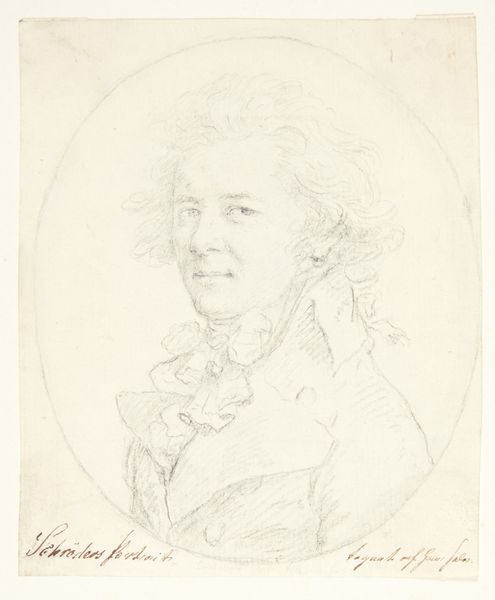 This self-portrait was made by Johann Jakob Hoff around 1856, probably with graphite on paper. Note how the soft circular form, framing Hoff’s head and shoulders, immediately invites a feeling of gentle introspection. Hoff's meticulous hatching defines the planes of his face and clothing. The way light models his features—the soft gradations on his cheek, the subtle shadows under his eyes—lends the image a sense of depth. There’s an interesting tension between the precision of his facial features and the looser treatment of his hair and clothing. This contrast gives the portrait a dynamic quality, capturing both the artist’s likeness and a sense of his personality. The oval format could be seen as a deliberate choice, evoking classical portraiture conventions while also allowing Hoff to explore the tonal range of graphite. It transforms a simple sketch into a study of form and self-representation. By focusing on the formal elements, Hoff’s self-portrait becomes not just a likeness but an exploration of identity through line and shadow.