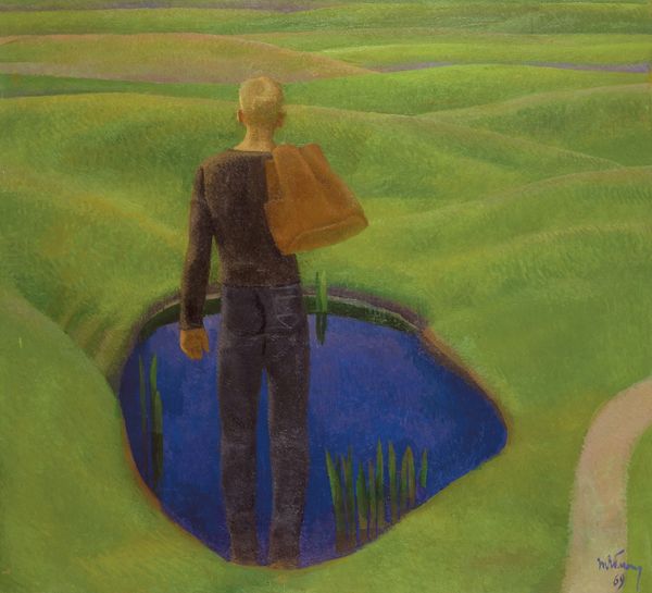 René Magritte made this oil painting, Youth Illustrated, using thin layers of paint to create a dreamy, surreal scene. The sky is vast and pale blue, like a faded memory. Magritte's brushstrokes are almost invisible, giving the scene a smooth, uncanny feel. Everything is meticulously rendered, but it's a strangely calm and detached kind of realism. Look at the way the lion is painted, each strand of its mane carefully placed. And then there's that headless torso, so smooth and white against the rough, earthy path. It’s the tension between these textures and the unexpected objects that really gets to me. It's a conversation between control and the wild absurdity of the unconscious mind. You could say he was influenced by de Chirico, but Magritte’s work feels more playful. It’s like he’s inviting us to play a game, but the rules are never quite clear, which is just perfect really.