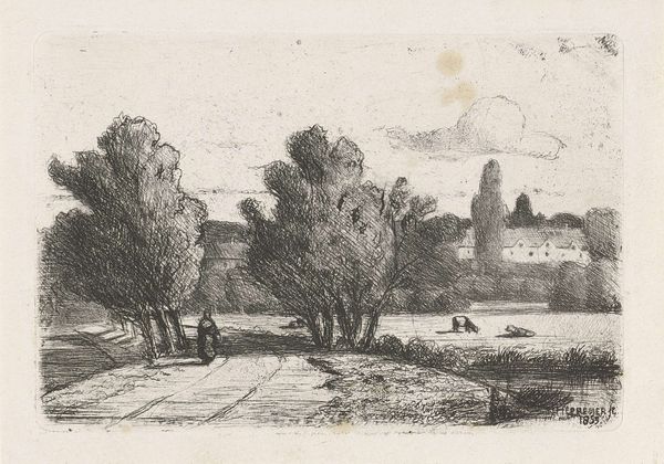 Jan Heppener made this etching called Polderlandschap in the 19th century. Heppener lived through a time of great change in the Netherlands, which was marked by industrialization, urbanization and a growing sense of national identity. Heppener captures a sense of place, the flat landscape characteristic of the Dutch polders evokes the relationship between the Dutch people and their land. The scene suggests a connection to the agricultural way of life, even as the country was undergoing rapid modernization. Look closely, and you'll see figures walking along a path in the centre of the composition and animals grazing in the fields which create a harmonious balance between mankind and nature. It reflects a deep appreciation for the Dutch landscape and the traditional way of life. Although seemingly simple, the scene reflects the sentimental feelings and deep appreciation for the Dutch countryside.