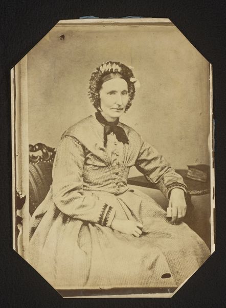 This small photograph by W.F. Schlötel is an oval portrait of an unknown woman. The image, though simple, offers a glimpse into the social conventions and the rise of photography as a means of representation. Likely taken in the Netherlands during the mid-19th century, this portrait reflects the growing accessibility of photography to the middle classes. The woman’s modest attire and demeanor suggest a middle-class background, and her pose is a constructed one meant to project a certain social position. Photography studios were becoming more common in urban areas, and portraits like these were a way for individuals to assert their identity and status in a rapidly changing society. The very act of commissioning a photograph speaks to new forms of self-awareness and social aspiration. To fully understand this image, we would delve into the history of photography and the emerging visual culture of the time. We'd also look at how institutions shaped personal identity and public image. Only then can we appreciate its significance as a cultural artifact.