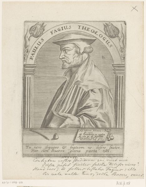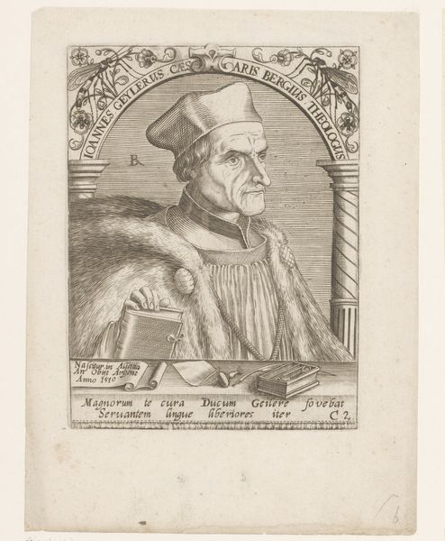 Robert Boissard created this print of Johannes Bugenhagen sometime between 1586 and 1691. Bugenhagen was a key figure in the Protestant Reformation, and this portrait encapsulates the intense religious and intellectual fervor of that period. Consider the weight of reformation and the challenge it posed to existing power structures. Boissard's engraving captures Bugenhagen in a moment of scholarly contemplation, holding a book that signifies his commitment to theological study and reform. The detailed rendering of his face, framed by simple attire, directs our attention to his intellectual and spiritual presence. The inscriptions accompanying the portrait reinforce Bugenhagen's legacy. These textual elements celebrate his role as a theologian and reformer, underscoring the historical and religious significance of his work. How does this portrait invite us to reflect on the power of individuals to shape religious and social change? Ultimately, Boissard’s work emphasizes Bugenhagen’s personal conviction and courage, and it serves as a testament to the enduring impact of the Reformation on society.