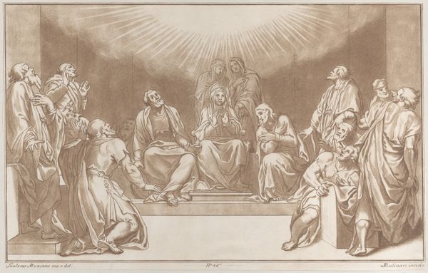 Curator: Welcome. We're looking at "A Group of Turkish Women Dining," a pencil drawing created anonymously sometime between 1555 and 1559. It's currently housed here at the SMK, the Statens Museum for Kunst. What are your initial thoughts? Editor: It’s delicate, almost ghostly. The light pencil work on toned paper gives it this ephemeral quality. You can almost feel the hand that sketched this scene. What’s the story behind it? Curator: Well, we don't know who created it, which is an important part of its story. Consider how artistic production in the 16th century was so closely tied to patronage. Someone commissioned, or perhaps collected, this glimpse into what was then seen as an "exotic" culture. The gaze is Western, clearly. Editor: It’s a document, essentially, crafted with pencil, ink, and observation. I am drawn to that action of sketching, how the artist must have moved through the space, fixing fleeting moments with light, but definitive lines. Note also the depiction of labor – or the absence of it, this being an aristocratic leisure scene. Curator: Precisely! Look at the setting. It’s not just about capturing faces, but presenting a lifestyle, a way of life that was carefully observed, interpreted, and then communicated to a European audience hungry for knowledge and perhaps titillation, about the Ottoman world. How much is truly observed versus imagined, following stereotypes? Editor: You're right. The “authenticity” is immediately suspect, refracted as it is through a specific cultural lens. I wonder about the type of pencil and paper; accessing high quality materials alone would place the artist and their patrons within a specific social sphere of class and commerce. It becomes more than just a "sketch;" it is an object loaded with meaning, from its production to its display in a museum like this one. Curator: It really highlights how much our understanding of the past is shaped by who gets to tell the story and through which media. Even a "simple" sketch speaks volumes about the dynamics between cultures, about representation, and the power structures inherent in observation. It also reminds us of what's lost when authorship remains anonymous. Editor: Indeed. Analyzing the materials, process and subject allows us to better unpack the complexities and contradictions in these representations, and appreciate its significance as both a historical artifact and material object. Curator: A fascinating work offering an open, important socio-historical context for interpretation and awareness. Editor: It definitely offers food for thought on material culture.