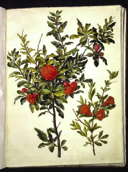 Hans Simon Holtzbecker rendered this Solanum pseudocapsicum around the mid-17th century with delicate precision. In the visual language of that era, plants were not merely botanical specimens, but carriers of deep symbolic weight. Consider the berries: their vibrant colors and round shape are reminiscent of other fruits that historically symbolize fertility, abundance, and even temptation. Think of the apples in classical myths that trigger fateful events. These fruits, while beautiful, possess a latent power, much like the Solanum here. The plant itself, with its leaves reaching skyward, mirrors the perpetual quest for growth and knowledge seen in the Tree of Life across cultures, from ancient Assyria to the medieval Christian world. But unlike those trees, Solanum carries a certain ambiguity, a potential for both nourishment and harm, reflecting the complex relationship humans have always had with the natural world. This duality engages our psyche, reminding us that beauty and danger often intertwine, a notion deeply embedded in our collective memory. Thus, Holtzbecker's illustration is not merely a botanical record, but a mirror reflecting humanity’s enduring fascination with nature's gifts and hazards.