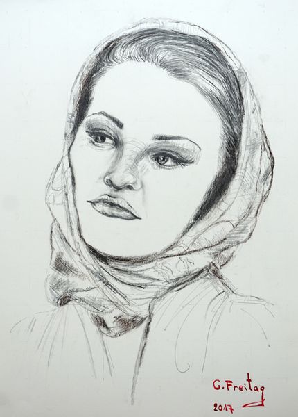 Reza Rahimi Lasko's "Portrait of a Woman," approximately 70 by 50 cm, compels with its tonal precision and direct gaze. Rendered in graphite, the portrait balances detailed facial features against a subtly suggested background, evoking a sense of quiet introspection. The artist's skillful use of line and shading constructs form, particularly in the woman's face and the texture of her knitted hat. Notice how Lasko modulates the gradations of graphite to create depth, giving the face a sculptural quality. The unfinished details of the coat give a sense of openness, inviting speculation about completion and artistic process. The interplay between the defined and the suggested destabilizes any fixed reading, encouraging us to consider not just what is represented, but how the representation itself creates meaning. It acknowledges art as a continuous process, valuing the space for interpretation as much as the image itself.