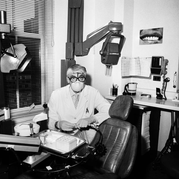 Editor: Here we have an untitled photograph by Jack Gould, showing a man at a desk, smoking a pipe. The reversed tonality creates such an interesting effect! How would you interpret its composition? Curator: The photograph, despite its inverted palette, meticulously arranges geometric forms. Note how the sharp lines of the desk intersect with the circular shapes of the pipe and the man's head, creating a subtle tension. It's about the formal relationships, wouldn't you agree? Editor: Yes, I see it now. The inverted tones also highlight the texture of the paper he's holding, adding another layer to the composition. Curator: Precisely. The artist skillfully uses contrast to draw our eye to these essential elements, inviting us to decode the visual language of the image. Editor: I didn't notice that at first! It's fascinating how much detail is revealed by focusing on just the forms and contrasts. Thanks!