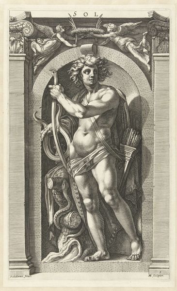 Marcantonio Raimondi made this print of the Apollo Belvedere, sometime before 1534, using a metal plate and a painstaking process of engraving. Look closely and you’ll see it’s made of thousands of tiny etched lines. Raimondi used a tool called a burin to cut these lines into the metal, creating an image that could be reproduced many times over. The incised plate was then inked and pressed onto paper, transferring the image. Engraving was a skilled craft, requiring precision and control. Unlike a drawing or painting, the engraver couldn’t easily erase or rework mistakes. Each line had to be carefully planned and executed. Note how the density and direction of the lines create shading and volume, giving the figure a sculptural presence. The print's stark black and white contrast focuses our attention on the technical skill of the artist, whose labor made the original sculpture accessible to a wider audience. This challenges the traditional hierarchy of artistic mediums, by elevating printmaking from a mere reproductive technique to a highly skilled art form.
