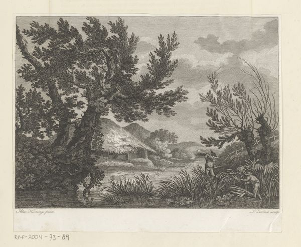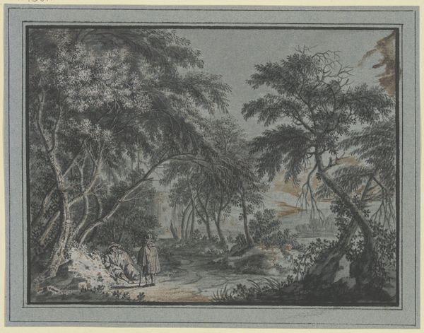 Alexander Cozens created this landscape using etching, a technique that scratches images onto our minds as surely as it does on the printing plate. Here, the solitary figure stands by the water, dwarfed by nature's grandeur, an emblem of humanity's place within the cosmos. This motif echoes through art history, from Caspar David Friedrich's wanderers to the contemplative figures in classical paintings. Look closely at the gnarled, ancient trees. They act as silent witnesses, their forms twisted by time, bearing a resemblance to the sacred groves of ancient Greece and Rome, places of spiritual significance. These can be tied to a collective subconscious memory of nature's power. The ruined building in the background adds to the image a layer of melancholy and nostalgia, a powerful emotional pull. The landscape and the figure are recurring symbols, continually reshaped and imbued with new layers of meaning.