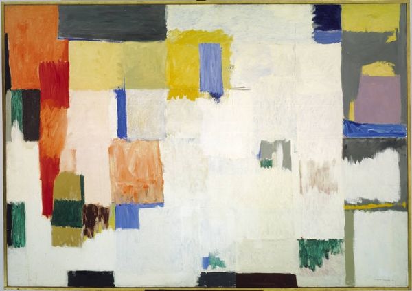 Editor: So here we have Hans Hofmann’s “Cathedral” from 1959. It’s a pretty large mixed-media work… mostly striking rectangles of bold color. There’s a powerful sense of structure but also… playful chaos? How do you interpret this work? Curator: Well, first, let’s consider the title: "Cathedral." Immediately, I think of soaring heights, stained glass casting kaleidoscopic light… something both grounded and aspirational. Do you see echoes of that in the painting itself? To me, it feels like Hofmann is wrestling with the monumental. Editor: I do now, definitely, the sheer scale feels almost… overwhelming, like standing at the base of something huge. But the colors! So vibrant for something calling itself ‘Cathedral.' I was expecting something…gothic. Curator: (Chuckles) Precisely! Hofmann throws a curveball. He's less interested in the literal representation, and more in the experience of awe. He aims to create a sense of space and depth with these "push and pull" effects. How do the colors affect your perception? Do some colors advance, while others recede? Editor: Okay, now that you mention it, yes! The reds and yellows do seem to jump out at me, while the blues and greens create a sort of background rhythm. I never would've thought about cathedrals like this! Curator: Exactly, It challenges our expectations, doesn’t it? It is the point! And, that's the brilliance. We bring our associations, and Hofmann takes them and sets them dancing. Editor: It’s a lot more exciting than the cathedrals I’ve visited! I love how Hofmann takes something so traditional and makes it feel totally new and…electric. Curator: That’s the beauty of art – its capacity to take the familiar and transform it, through the eyes and hands of a singular soul.