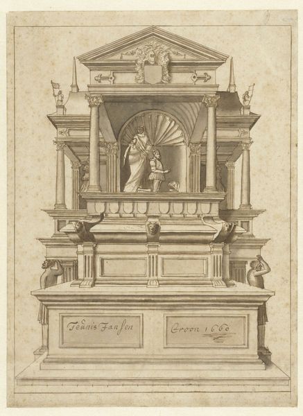 This print, Cœnotaphiorum (2), was made by Hans Vredeman de Vries, probably toward the end of the 16th century. It's done in ink on paper, using a technique called engraving. Lines are incised into a metal plate, which is then inked and printed. This process is well-suited to architectural renderings, because of the precision it affords. Just look at the regularity of the lines, the sense of three-dimensionality that is so powerfully conveyed. We see a complex structure that imitates marble. But it’s all an illusion, created by the engraver’s skill. The inscription at the bottom suggests the kind of labor involved in the production process. Consider, too, that prints like this were a key technology in the early modern period. They enabled the rapid distribution of images, influencing design and taste on a mass scale. This print stands as an example of how 'low' and 'high' art can be powerfully combined. The means of production are what give the artwork significance.