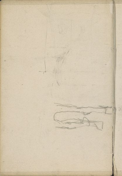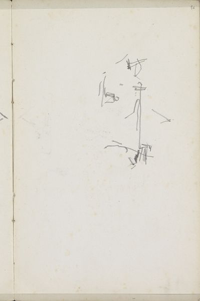 This sketch of three figures was made by George Hendrik Breitner using graphite or charcoal on paper. You can see Breitner’s thinking process here, the way he’s feeling out the forms. It’s all about the gesture, the bare minimum to suggest a figure in space. The marks are light and quick, almost like he's trying to catch a fleeting moment, or maybe just warming up. Look at the smudges and the incomplete lines, the way the figures are suggested rather than fully drawn. There’s an urgency in the marks, like he’s trying to capture something before it disappears. It reminds me of Cy Twombly's drawings, the way he uses scribbles and gestures to create a sense of movement and energy. Ultimately, these "Drie figuurstudies," are less about capturing a likeness and more about capturing a feeling, a sense of movement and life.
