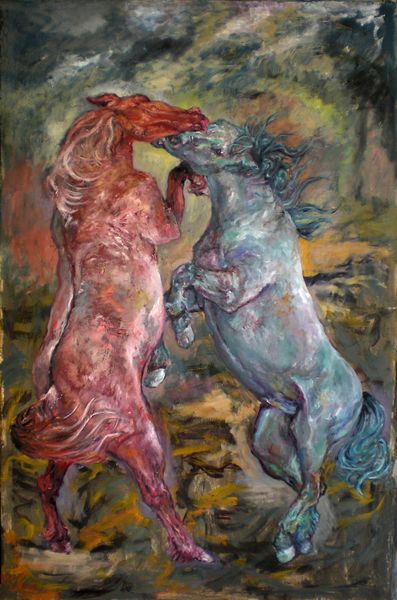 Bernd Luz made "Horses" with what looks like quick, intuitive strokes and a warm, earthy palette. It's a dance of color and form, capturing the energy of these majestic animals. The texture in this piece is really something; you can almost feel the energy of the brushstrokes, thick in some places, thin in others. Luz doesn't shy away from the physicality of the medium, and that's what makes it so alive. Look at the way the light catches the edge of the rearing horse, the way the colour almost vibrates. It's as if Luz is trying to capture the feeling of horses, not just their image. This approach reminds me a little of Franz Marc, who used animals as a way to explore ideas of spirit and vitality, although Luz brings his own contemporary twist to it. For me, painting is always about this kind of ongoing conversation, and Luz adds his own, unique voice.