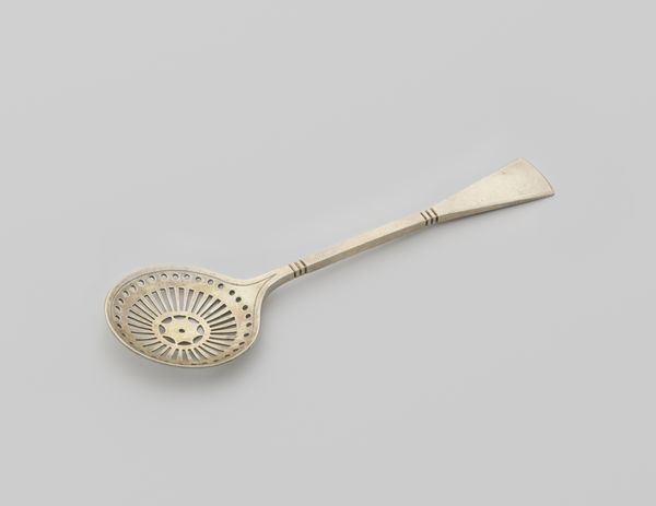 This strainer was crafted by Jacob Gerritse Lansing in the 18th century, from silver. Consider the labor invested in this object. Silver is extracted from the earth, then smelted and refined. Lansing, a silversmith, would have melted the refined silver and shaped it, using hammers and forming tools. Note the small, precisely placed perforations: each one carefully made to allow liquid to pass through. The handle is formed separately, with delicate ornamentation, then attached. This strainer speaks to a culture of refinement and consumption. In the 1700s, tea, coffee, and other imported beverages were luxury goods, requiring specialized implements like this one. The strainer isn't just a functional object; it's a symbol of status, reflecting the owner's wealth and taste. Lansing's craftsmanship elevates the everyday, blurring the line between the functional and the artistic. It reminds us that even the simplest objects can carry complex social and cultural meanings.