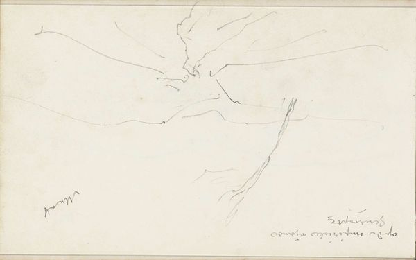 Editor: So, here we have “Pad in een rotslandschap,” or “Path in a Rocky Landscape,” a pencil drawing from around 1840 by Johannes Tavenraat. The looseness of the lines and almost minimalist approach gives it a feeling of transience, like a memory fading. What do you make of it? Curator: I love that initial read. “Transient” is spot on. It's like catching a glimpse of something that’s more about suggestion than strict representation, isn’t it? For me, Tavenraat is not just depicting a landscape, but almost conjuring up a mood – a solitary trek into the unknown. I wonder, does that sparse use of line contribute to your sense of it being a 'fading memory'? Editor: Absolutely! It's like the essence of a place distilled. The way the rocky terrain is just hinted at makes my mind fill in the gaps. I guess it’s the spirit of Romanticism, placing importance on subjective experiences rather than objective truth. Curator: Precisely. And you know, when I look at that little flock of birds taking flight… it feels as though they’re carrying our gaze deeper into that imagined space, towards some elusive destination we can only dream up. A pretty cool artistic sleight of hand, wouldn't you agree? What kind of a traveler do you think would choose this path, or make this journey? Editor: Someone who is seeking solitude, for sure. Maybe someone a little bit melancholic? That’s just the feeling that the bareness of the composition evokes, at least for me! It also makes me think about the tradition of the *plein air* sketch and how this one captures just that first fleeting impression that the artist experienced while out in nature. Curator: I totally dig the melancholy vibe! You know, there’s a wonderful quietude here, a willingness to embrace simplicity. It makes one think about what you *don’t* need to depict, to convey an overwhelming emotional landscape. Editor: Right, it's about capturing the feeling, not just the scene. It's made me rethink how powerful suggestion can be in art. Curator: Me too! Always a gift when a simple sketch prompts us to reflect on something so expansive.