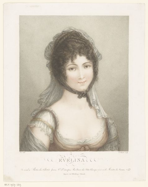 Michele Bisi created this stipple engraving of Princess Auguste Amelie of Bavaria sometime in the early 19th century. Bisi, an Italian artist, likely made this print to circulate amongst the European aristocracy. Consider the politics of imagery. Stipple engraving was a popular method for reproducing portraits, and it allowed for mass production and distribution. This portrait flattens the three-dimensional reality of the sitter and the stippling process softens her features, creating an idealized image of feminine beauty and nobility. The architecture of her bodice reinforces the Princess's elevated social status, as does her serene and composed expression. Historians of prints would look to sources such as newspaper advertisements, letters, and diaries to understand the social context in which it was made. The meaning of this print is contingent on its circulation and reception, offering insights into the cultural values and power dynamics of the time.