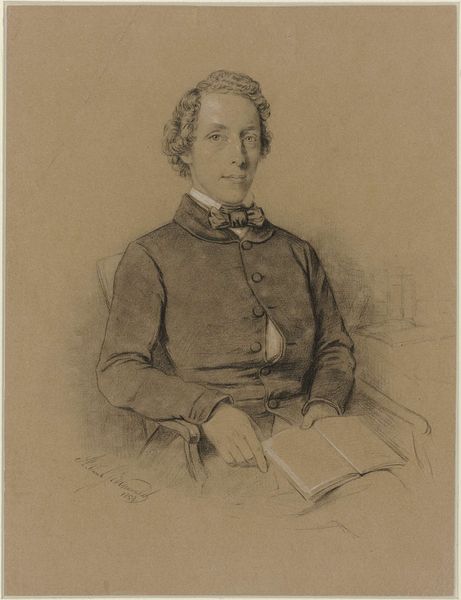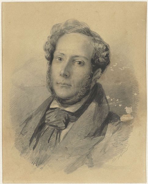 Editor: This is Henricus Wilhelmus Couwenberg's "Portret van Reinier Craeyvanger," a pencil drawing from 1839. There's a fragility to the piece – the delicate lines, the sitter's almost wistful gaze... It makes me wonder about the story it’s trying to tell. What do you see in this work? Curator: I see the weight of Romanticism, a fascination with the individual soul expressed through symbolism and precise detail. Note how the artist captured not just a likeness, but a certain melancholy inherent in the era. The subject's posture, his subtly disheveled hair – these resonate with the Byronic hero archetype, echoing a deep-seated cultural memory. Editor: So, the way he's depicted isn't just a stylistic choice, but speaks to broader cultural ideas? Curator: Precisely. Look at the softness of the pencil strokes. Graphite as a medium allows for capturing ephemeral moods. This isn’t simply a record; it’s an evocation of a feeling. Is this ‘Craeyvanger’ we are seeing or the culturally constructed and prescribed emotions from Romanticism in the artist's rendition? How much of our modern reading is coloured by these visual precedents, these layers of symbolic representation built over time? Editor: That's fascinating. I hadn't considered how the medium and style choices work to create that sense of melancholy. It feels less like observing and more like understanding the weight of a feeling in history. Curator: And through understanding that weight, we also understand ourselves better. Seeing our visual heritage helps reveal cultural continuity through familiar yet always evolving symbols. Editor: I appreciate understanding how the cultural memory surrounding this piece adds to its layers of meaning, making me feel much more connected. Curator: Indeed, images provide emotional connections, as visual echoes across time help in personal understanding.