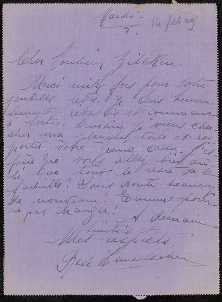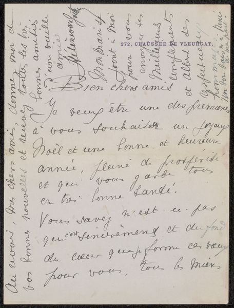 Curator: We're looking at "Fragment of Long Inscription," a pencil drawing on paper by Paul Gauguin, created around 1895, currently held at The Art Institute of Chicago. What's your initial take? Editor: My first impression is one of faded intimacy, a hushed whisper on paper. The handwriting is difficult to decipher, and the sketchy figures at the bottom seem like ghosts haunting the script. Curator: Indeed. The script provides an entry point. Even fragmentary, the text and imagery offer clues to Gauguin's state of mind during this period, revealing insights into the personal symbolism that informed his more finished works. Do you feel you have to know french to find that state of mind ? Editor: Definitely. But it also feels fraught, weighed down. I can't help but view his Tahitian period through a postcolonial lens, one that acknowledges his exoticization of indigenous peoples and cultures. The text seems like another layer to this context, since the viewer would probably require translations. It deepens my discomfort as a viewer, because while there are aesthetic values, the politics underneath are harder to navigate. Curator: The symbolism also carries a weight of its own, separate from, and in complement to, contemporary political analysis. We know that Gauguin deeply identified with the "savage" or "primitive," and often uses visual short hand that relies on symbolic interpretation and draws on cross cultural mythologies and narratives to represent it. What does the text actually say though ? Editor: I only gather parts of it, but it references "wild savages" who don't understand him, something is "imposed," that is making it hard to consolidate or feel comforted. Then what sounds like an instruction about being 'proud, crowned, and multiplied'. It hints at the profound disjunctions in Gauguin's project of self-exile. It suggests that no matter how deeply he travels he will encounter a divide within himself. I find his inscription of this painful interior process on this work powerful and quite sad. Curator: Precisely. That search for the uncorrupted "primitive" was, of course, a construction itself. But, looking closely, can we see elements beyond cultural dissonance? Can the script, that faded line on paper itself point to an elemental search? Editor: Perhaps, and perhaps there's a romanticism embedded within this sentiment that makes me still deeply uneasy. But its worth exploring the artist as both cultural icon, but also someone deeply lost in their own artistic mission, without the right tools. Thanks for your insights into these elemental gestures of artistic process.
