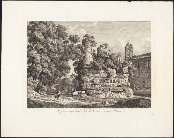 Editor: Here we have "Tuin met een fontein met naakte vrouwen en dolfijnen bij een sfinx," or "Garden with a Fountain with Nude Women and Dolphins near a Sphinx," a drawing and etching in ink on paper, made by Gabriel Huquier around 1725 to 1750. What immediately strikes me is this feeling of artifice, of human control over nature, with all these classical figures carefully placed. What do you make of it? Curator: That artifice is key, isn't it? Notice how the symbolism weaves throughout: water, a source of life and purification, gushes forth near figures both human and mythological. Consider the sphinx. In Western art, they often represent enigma, guardianship, or the secrets of the ancient world, set here within this cultivated space. Editor: So, the garden itself becomes a sort of symbolic space? Curator: Precisely. The very act of creating such a garden implies dominion over nature and an aspiration toward an ideal, often referencing classical myths or allegories. Think about what a fountain represents: the taming of nature, the channeling of power. These weren't merely decorative; they were imbued with meaning. Do you see how the artist positions the figures and objects to create a narrative, even if fragmented? Editor: I see what you mean, like each element adds a layer to the story. Curator: Indeed. And the interplay of these symbols allows viewers to engage with concepts of beauty, knowledge, and power structures of the time, rendered here through the lens of the Baroque aesthetic. It’s quite remarkable how a garden scene can hold so much weight, wouldn't you agree? Editor: Absolutely. It’s much more than just a pretty picture! Now I see layers of cultural significance I wouldn't have noticed on my own.