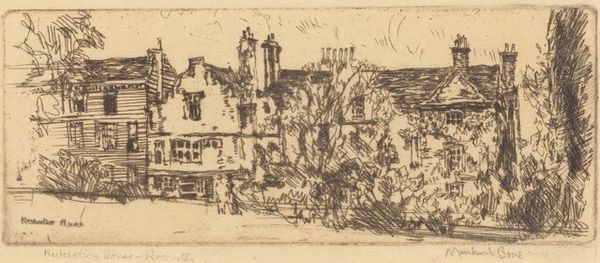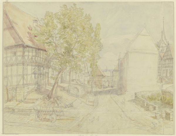 Editor: So, here we have Johann Friedrich Hoff's "Häuserzeile in Berg Nassau an der Lahn," sketched around 1859. It's a pencil drawing on paper, currently held at the Städel Museum. What strikes me is how delicately he captured these old buildings; there's a quiet charm about it. What do you see in this piece? Curator: Beyond the quaint aesthetic, I see the encoding of cultural memory within the architecture itself. Note the timber framing – each beam, each joint speaks of generations of craftsmanship, beliefs, and social structures. The lines are light, but confident; almost a dreamscape. Consider how Romanticism valued emotion and the past; the sketched houses aren't merely buildings, they are symbols loaded with longing for simpler times. Editor: So the houses become symbols in and of themselves. Do you think the very act of sketching it in pencil has some symbolic value? Curator: Absolutely. Pencil, unlike bolder mediums, invites intimacy. It speaks of transient observation, of capturing a fleeting moment before it vanishes. The very softness suggests the fragile nature of memory, doesn't it? Each of these marks echoes and connects our emotions and ideas with something greater. And these houses - I think about the people who inhabited them...the lives lived and unlived, stories whispered across centuries that echo in these simple architectural forms. Editor: That’s a great point; it makes the drawing much more evocative. I see this now not just as a depiction of a place, but as a vessel for historical and cultural narratives. Curator: Precisely. These aren't merely houses, but visual reminders and time capsules filled with collective memory and heritage. Editor: It’s interesting to consider art’s potential to encode historical and cultural context and the fragile nature of memory itself!