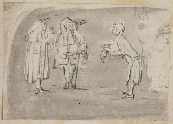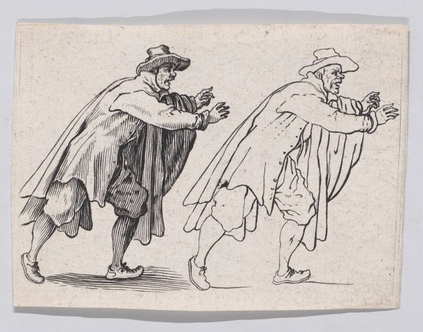 This print at the Metropolitan Museum of Art is a reverse copy of "Man Viewed from Behind, His Right Hand Extended," from "Les Caprices". Notice the stark contrast between the figure on the left, rendered with delicate outlines, and the one on the right, defined by dense, parallel lines. This shift in technique doesn't just depict form; it embodies a change in perception. The left figure, almost spectral, represents a foundational sketch, while the right one is a study in depth and solidity. The etching employs line work to explore dualities: presence versus absence, the sketch versus the finished form. This work challenges the idea of a singular, definitive image. The artist uses the very structure of the print—its lines and composition—to question how we perceive and understand the world through representation. It serves as a commentary on the nature of imitation and the endless possibilities of interpretation.