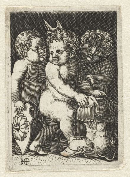 This print of two embracing putti, cherubic boys, with a potted plant was made by Pietro Antonio Cotta, using the intaglio technique. This process involves incising an image into a metal plate, inking the recesses, and then pressing paper against the plate to transfer the image. Look closely, and you can see how the network of etched lines creates tone and texture. Cotta has skillfully used hatching to give a three-dimensional quality to the figures and the drapery, capturing the softness of skin and the delicate petals of the flowers. This approach to printmaking demands meticulous labor, each line carefully considered to build up the image. Intaglio prints like this one were relatively easy to produce, and played an important role in disseminating images widely across Europe. So while it may appear to be "just" a print, it's important to remember the craft and care that went into its making, and the important role these images had in their time.