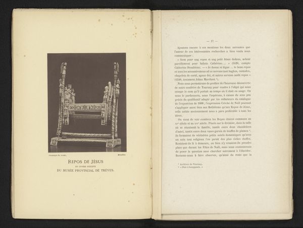 This is a photogravure print of Emile Aubry's Reliekhouder. The dominant visual experience is one of intricate verticality. Aubry captures the detailed architecture and the fine sculpture of the reliquary through the monochrome tones of the print. The geometric shapes are arranged in a complex, layered composition, conveying a sense of sacredness and monumentality. The reliquary's structure, with its repetitive vertical elements, suggests an attempt to visually represent hierarchical and spiritual ascension. These Gothic revival forms, rendered through the precise lines of the photogravure, reference a rich cultural history, but Aubry uses this language to explore the semiotics of religious representation. The interplay between light and shadow, the careful staging of the object—all challenge fixed meanings, engaging with new ways of thinking about perception. The photogravure's texture and tonal range serve not just an aesthetic purpose, but also function as part of a larger cultural and philosophical discourse. The structure invites ongoing interpretation, reflecting the shifting perspectives of both the artist and the viewer.
