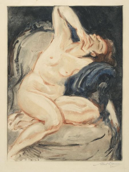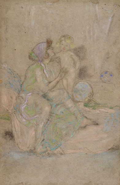 Curator: John Singer Sargent's "Study for 'The Unveiling of Truth,'" currently held at the Harvard Art Museums, presents a fascinating glimpse into the artistic process. Editor: It feels unfinished, dreamy. Like a half-remembered myth rising from the depths, all shimmering fabric and implied forms. Curator: Sargent was deeply involved in the mural project for the Boston Museum of Fine Arts at this time. The architecture of the museum and the prevailing cultural ethos undeniably shaped the final composition. Editor: The act of unveiling itself seems hesitant, tentative. I wonder, what truths are so fragile they need such careful revealing? Is it about the burden, perhaps, of knowledge? Or its seduction? Curator: Sargent often explored themes of allegory, truth, and societal values, reflecting the complex cultural landscape of his time. He invites us to consider how institutions like museums shape our perception of truth itself. Editor: It's a truth that is both intimate and monumental, isn’t it? The scale of the planned mural imbues a personal moment with a sense of grand, almost intimidating, importance. Curator: Exactly, and perhaps that's the ultimate paradox of unveiling truth: that it’s a deeply personal experience played out on a very public stage. Editor: A tension beautifully captured, even in this preliminary study.